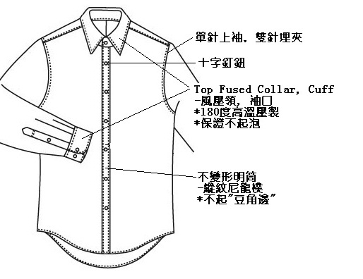 ~~優點: 恤衫領面、袖口不起泡、不脫鈕~~